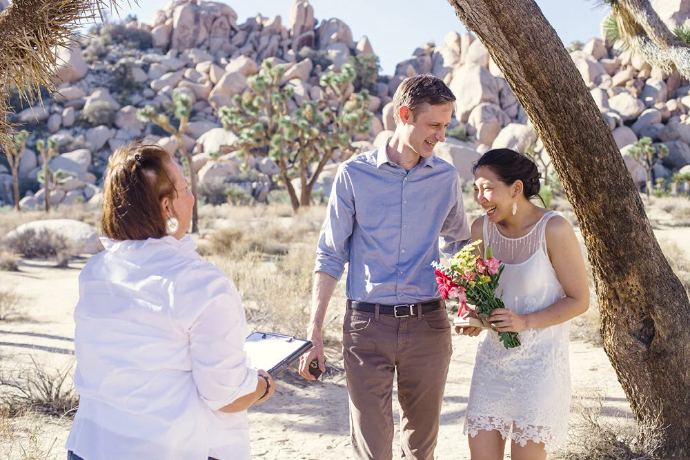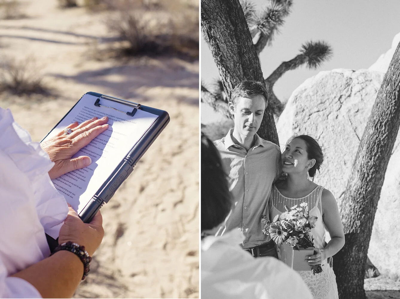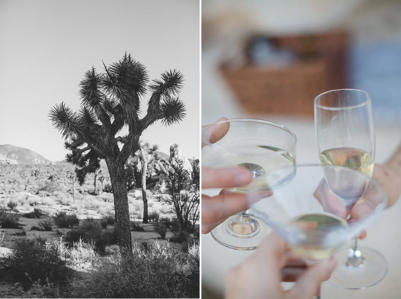 We're coming up on the 2 year anniversary of these two, and since this elopement has always been a favorite of mine, I thought I'd share it on the blog today. Cindy & Eric already had an upcoming wedding planned in the midwest, where they were also relocating for Eric's new job. But Joshua Tree was too special to them and they wanted to say good-bye their own way, so they decided to elope there on the down-low. It was just the two of them, an officiant, and me as their witness and photographer.For a couple hours we wandered around the desert, had a short ceremony next to an arched Yucca tree, ate grocery store cake, and drank champagne out of martini and scotch glasses. When our time was over, I watched them drive off, all their belongings packed in the back of their car, where they had a cross country drive to Chicago ahead of them in the morning. They still had their mid-west wedding a few months later, but I'll always remember them this way.
