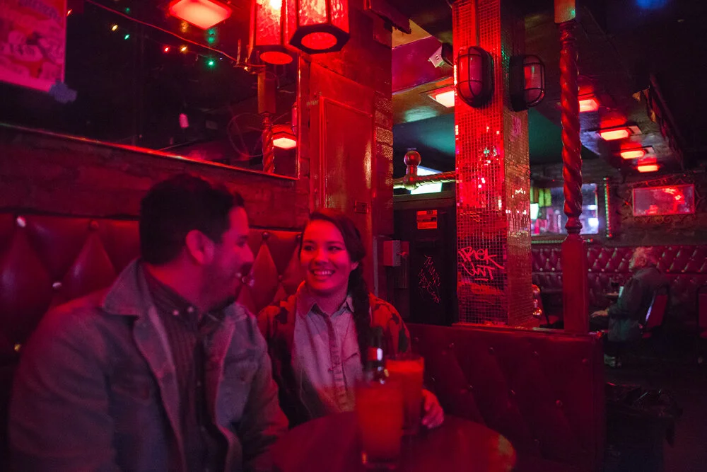 We walked through Grand Central Market (above) and then went by La Cita (below) for some Micheladas. La Cita is hands-down my favorite place for a daytime drink and their neon interior always perk me up. Who says you can’t enjoy yourself during your engagement shoot? I don’t think it’s a coincidence that some of our favorite photos from the shoot came from the stop we made into this little bar.