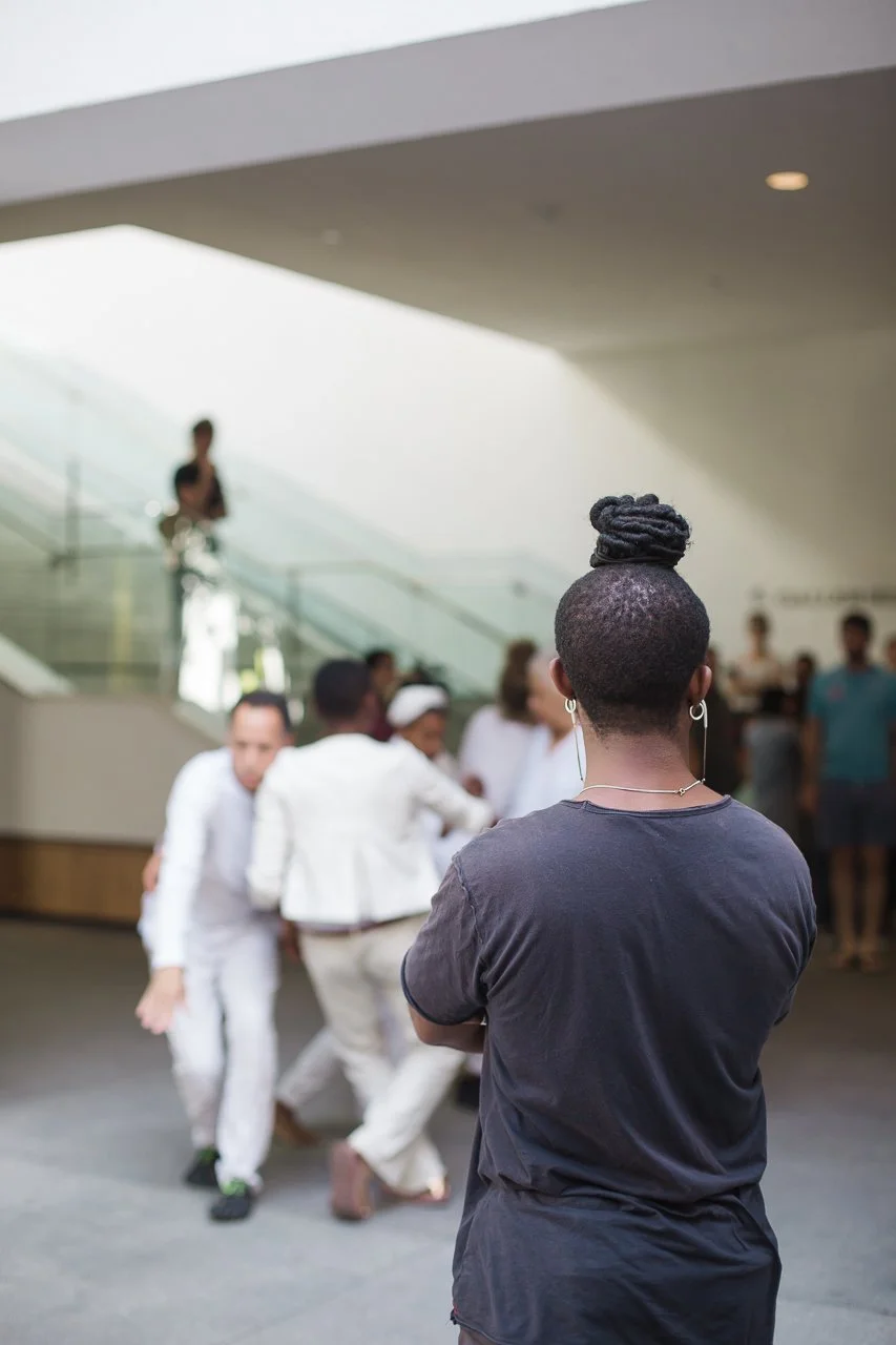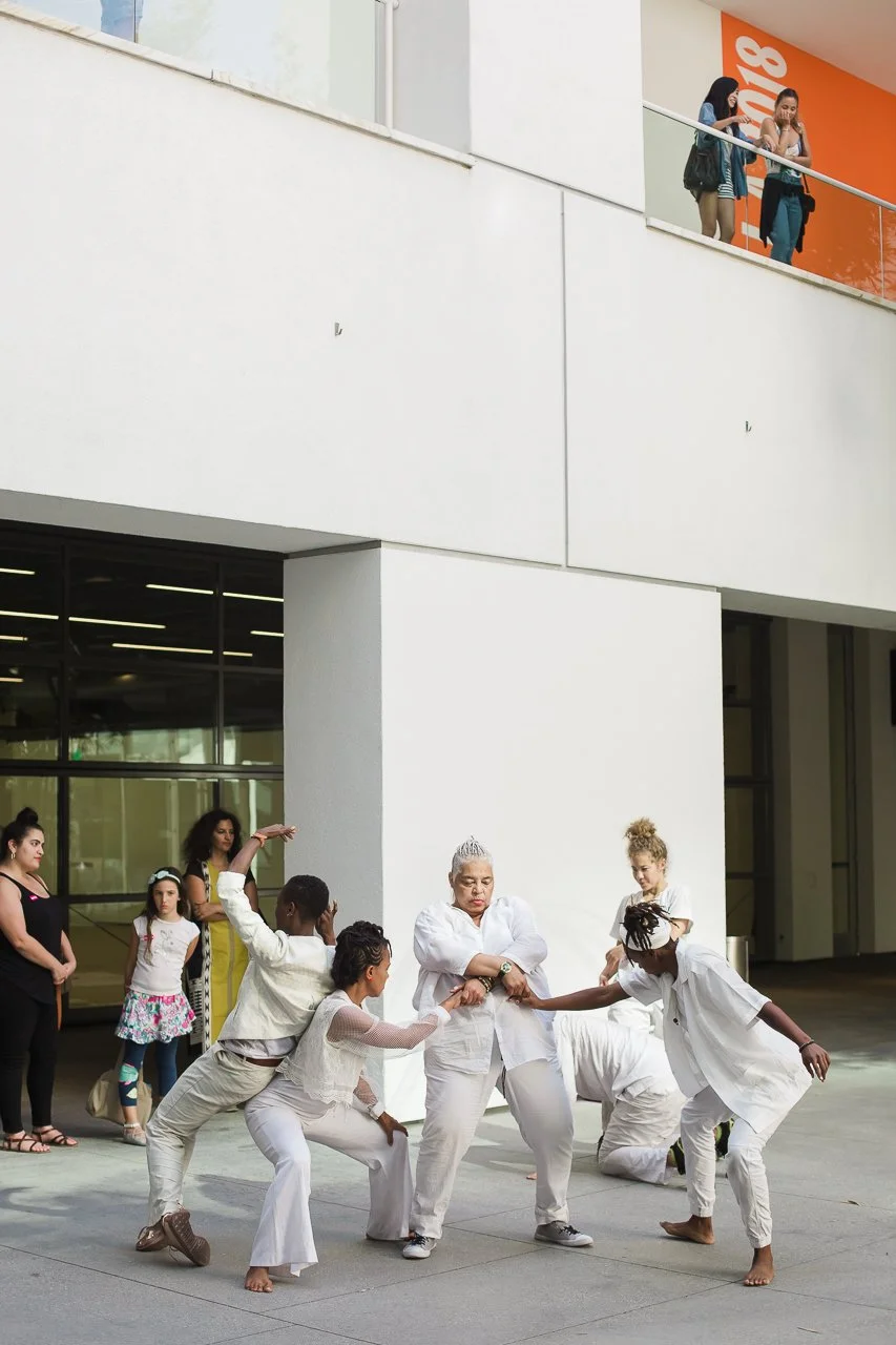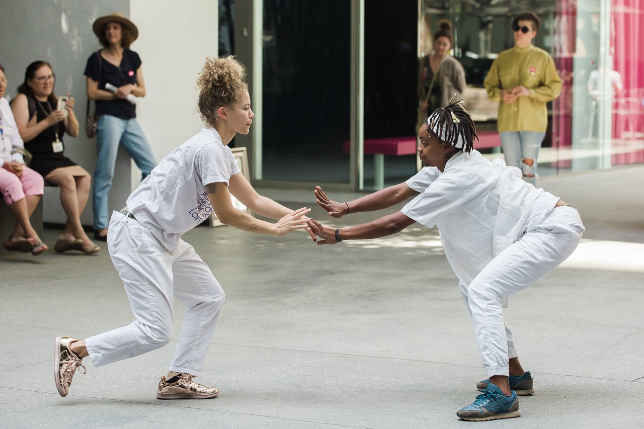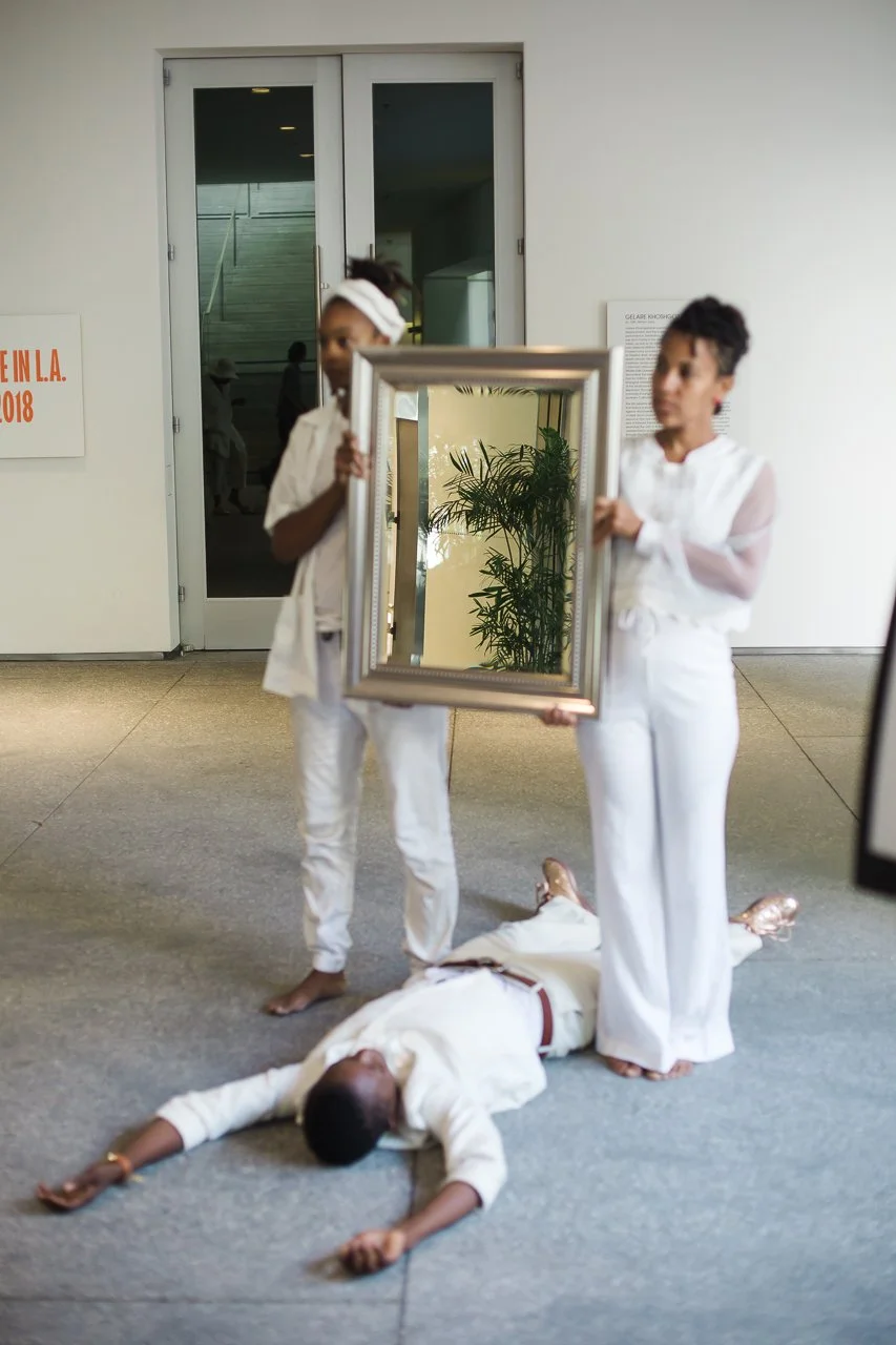 Artist taisha paggett presented a series of solo and duet dances in dialogue with her Made in L.A. 2018 installation. Engaging ideas of race, history, and institutional representation, these durational actions consider the liberatory potential of black and brown bodies moving within the galleries and beyond. This event, while open to everyone, was intended to create space for POC and allies.