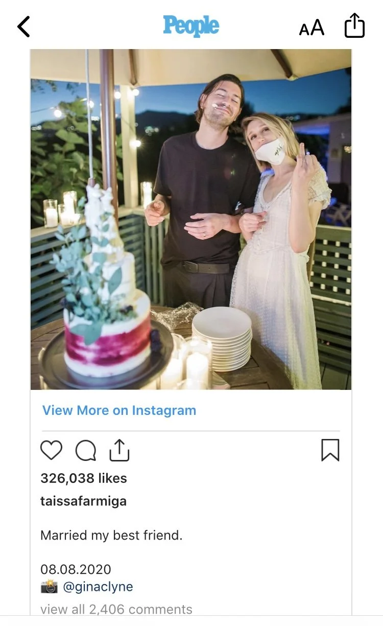 Taissa is an actress (as seen on American Horror Stories and so much more) & Hadley is a filmmaker. I shot these in 2020, deep in the cold social winter of the pandemic. 🥶 🎉 People were figuring out their gadgetry & Zooming their ceremonies, while keeping their in-person parties tiny & thoroughly sanitized. So that being said, thank you for being so warm & welcoming me into your home on such special occasion, Taissa & Hadley. ❤️ It honestly felt so great to have some beautiful, earnest humans to celebrate during such strange, fragile times. 🙏🏼
