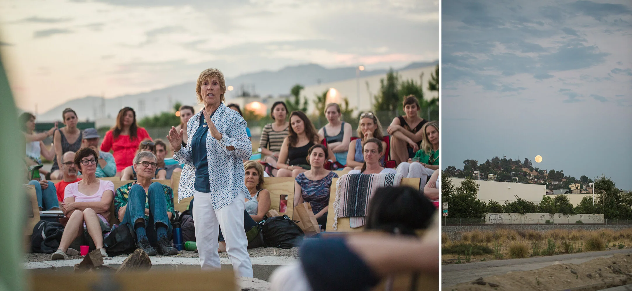 I had the privilege of photographing Clockshop's most recent event with Diana Nyad at Bowtie Project, two weekends ago this July. It was a pleasant summer evening around the fire while author and celebrated long distance swimmer Diana Nyad shared excerpts from her memoir, Find a Way, as the full moon rose over the L.A. River.